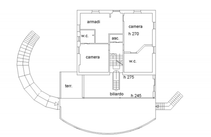• un’ampia sala biliardo, affacciata sulla terrazza curva caratteristica della villa.